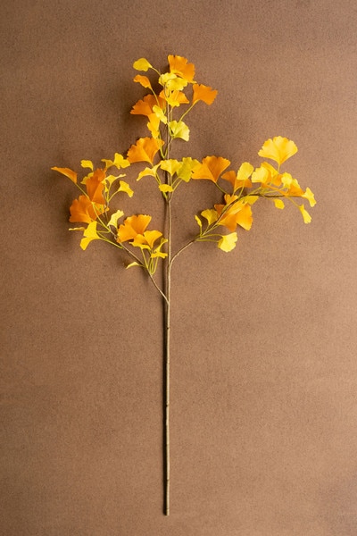 artificial golden ginkgo stem Pinit SKU: CYF1507 Sign in DescriptionAdd a pop of yellow to your next arrangement. This artificial golden ginkgo stem suits neutral or colorful arrangements. Add one to your fall list.Dimensions38"tDetails841628122718