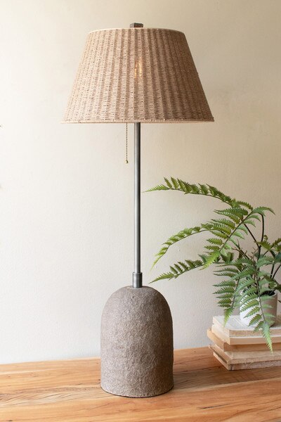 paper mache table lamp and rattan shade