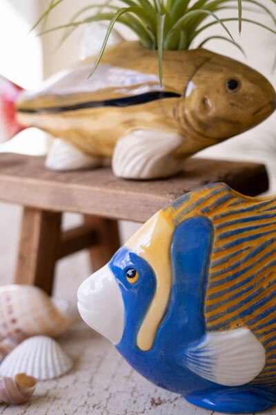 These cheerful fish bring a splash of seaside fun to your decor. Their bright colors and playful fins make candlelight feel lighthearted and breezy. They also double as tiny air plant holders, giving you two charming ways to let them swim into your styling. A cute pair that keeps your space feeling bright and buoyant.