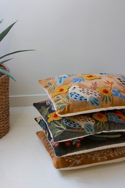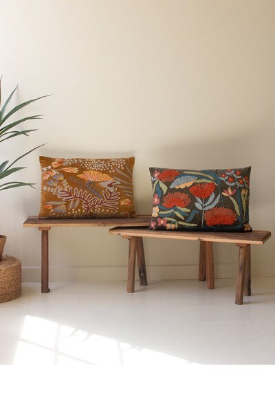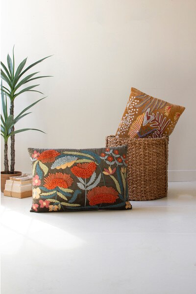 set of 2 embroidery pillows with flowers Pinit SKU: NNF1054 Sign in DescriptionSnuggle up to this set of two embroidered pillows with flowers. The set includes one of each color and is made in India. Mix and match or split the set.Dimensions23" x 15"tDetails841628117769