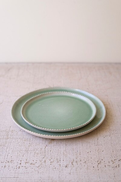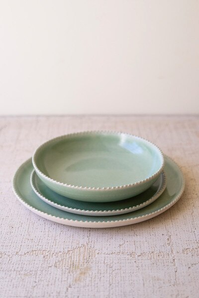 set of 3 sea mist ceramic dinner plate, salad plate and bowl