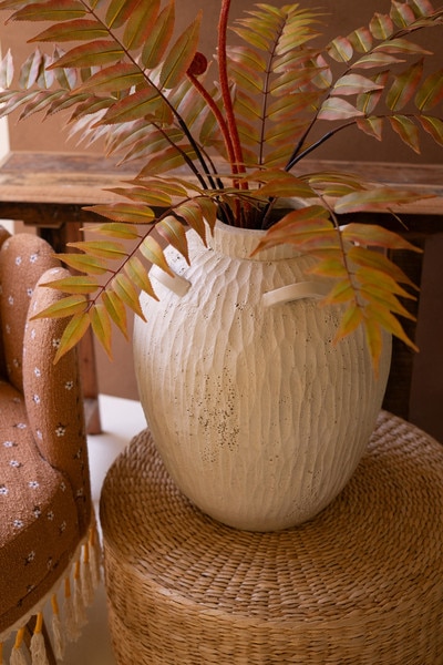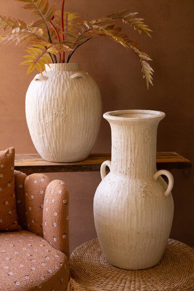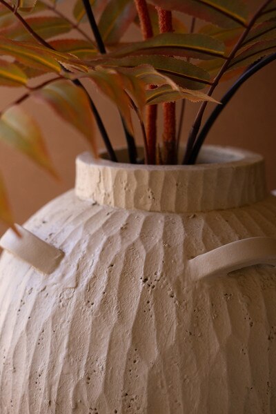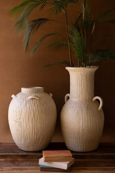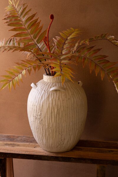 This stone composite urn has four handles for gripping. Place your year-round favorites in this neutral jar or add some color for the holidays. It has unique ridges on the side that suit any decor style.